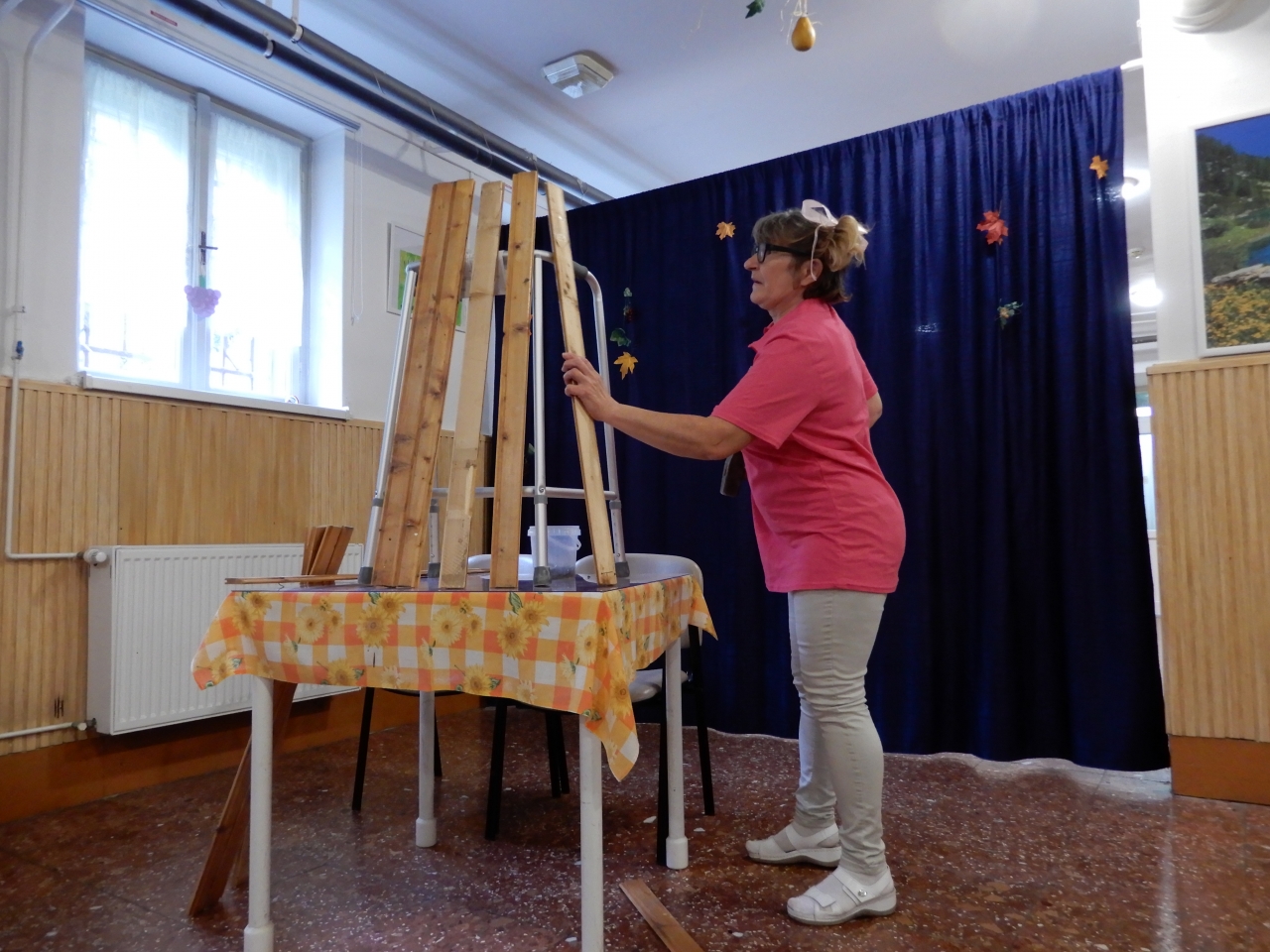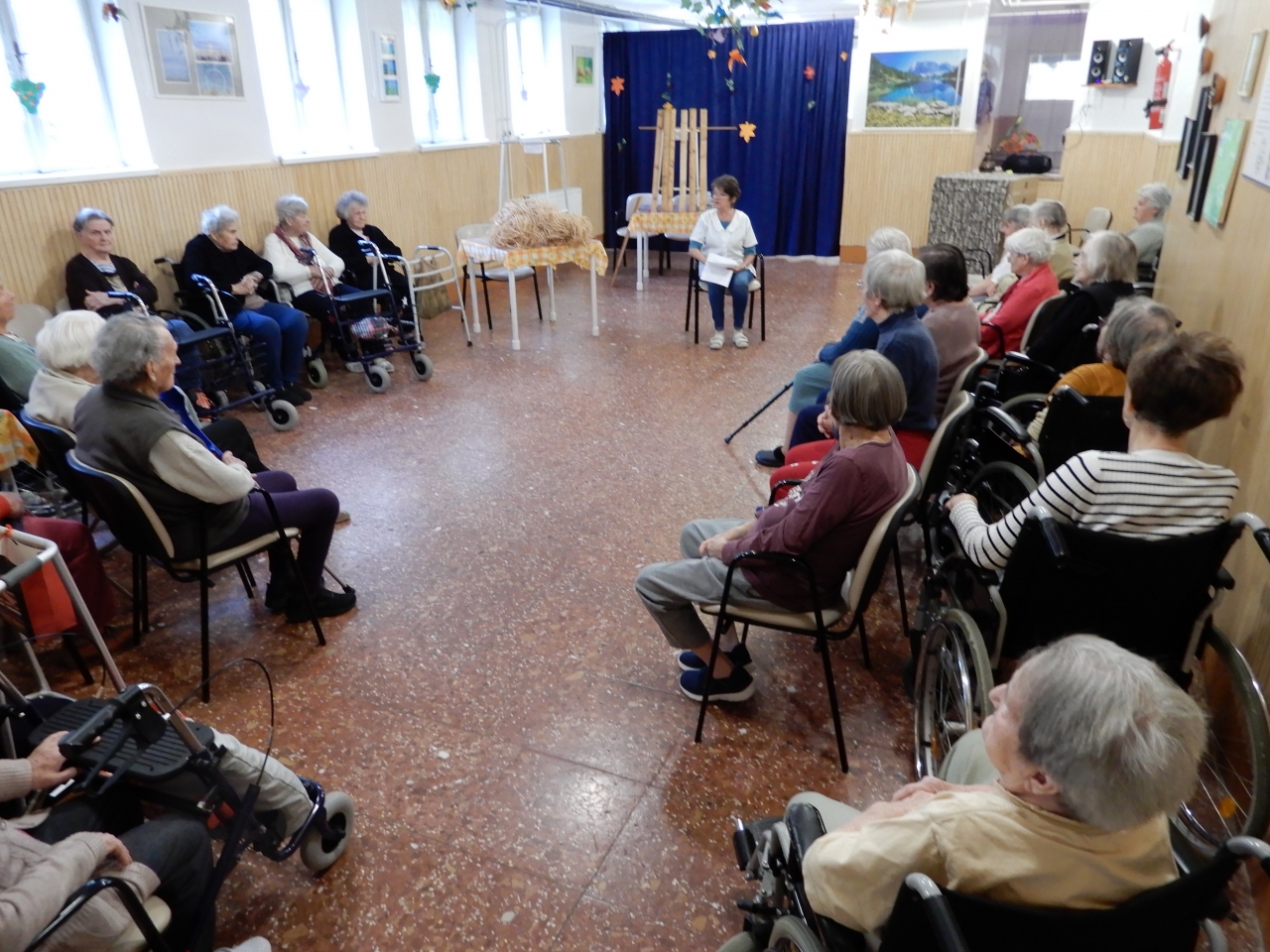 Az előadás után beszélgettünk a mesék szerepéről és jelentőségéről. Lakóink megosztották kedves gyermekkori emlékeiket, valamint arról is meséltek, hogy otthon, családban milyen történeteket hallgattak vagy mondtak tovább. A közös élmény nemcsak szórakoztató, hanem felemelő is volt: mindenki átélhette, hogy a mesék valóban hidat képeznek a generációk között.