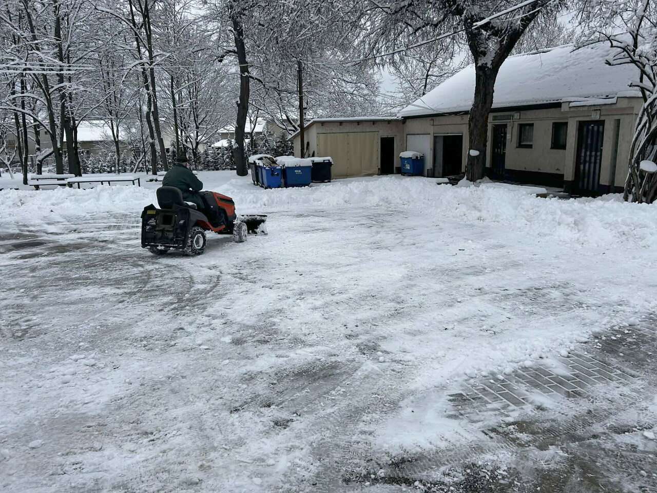 A park ilyenkor különösen varázslatos látványt nyújt: a csendet csak a hó ropogása töri meg, a fehérbe burkolózó természet pedig nyugalmat és békét sugároz. Lakóink örömmel gyönyörködnek az ablakokból a téli tájban, sokakban szép emlékeket idéz fel a havas kert látványa. Persze a biztonságos közlekedés miatt sok munkát is hozott ez karbantartóink számára, akik erőn felül dolgoztak a hóeltakarításon és a síkosságmentesítésen.