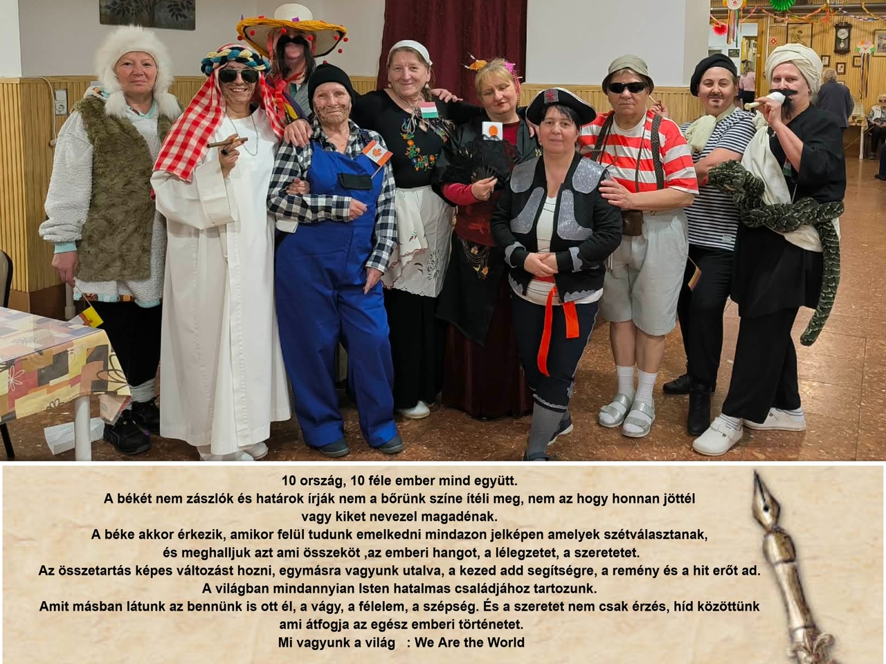 A népek, nemzetek témaköre úgy zárult, hogy mind mókázásban, mind gasztronómiában összetartoztak, hiszen ahogy a farsangon is elhangzott „ A világban mindannyian Isten hatalmas családjához tartozunk.”